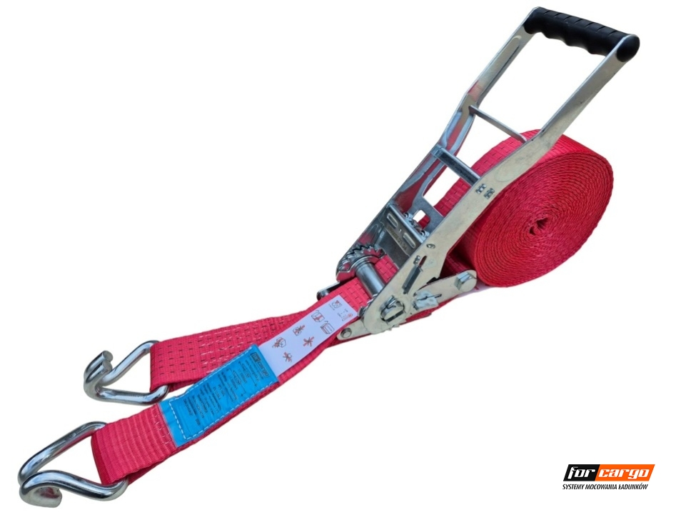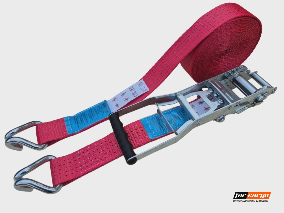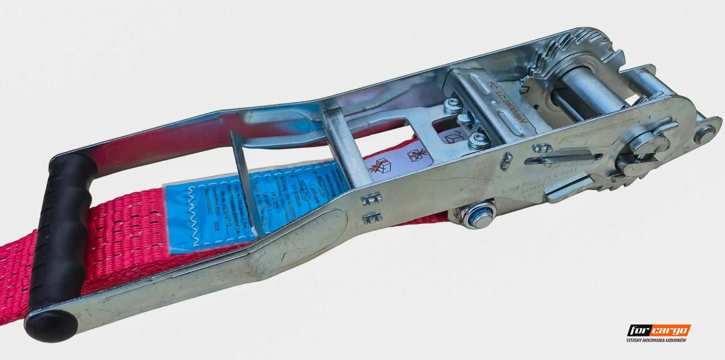 WAŻNE !!! Pas ma przeszytą metkę z każdej strony dzięki temu metka podczas użytkowania pasa nie ma możliwości oderwania się . Pas posiada: podwójną zębatkę,dużą klamrę (napinacz) o kierunku naciągu do dołu oraz wszelkie potrzebne certyfikaty , atesty i parametry wymagane w Polsce i Europie a w szczególności na załadunkach w Niemczech i Austrii STF 500 daN !!!